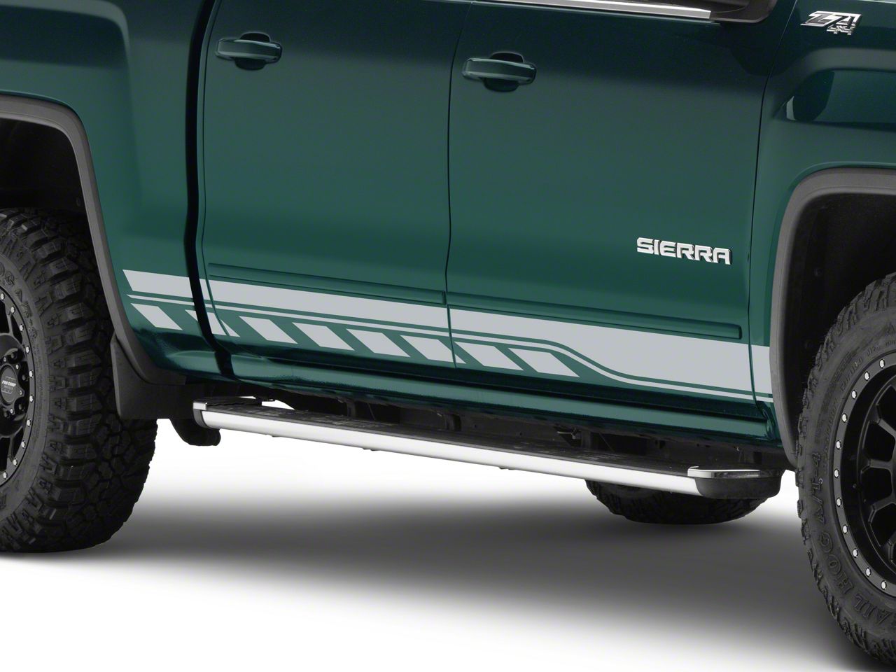 Application. These SEC10 Dash and Striped Rocker Stripes; Silverfeature a universal design and will fit most make and models. Driver and passenger side included.
