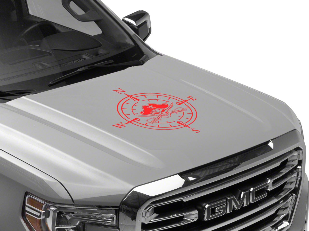 Pirate Compass Hood Decal. A simple and inexpensive way to personalize the exterior styling of your vehicle is with a Pirate Compass Hood Decal from SEC10. This Hood Decal features a pirate skull within a four point compass design.