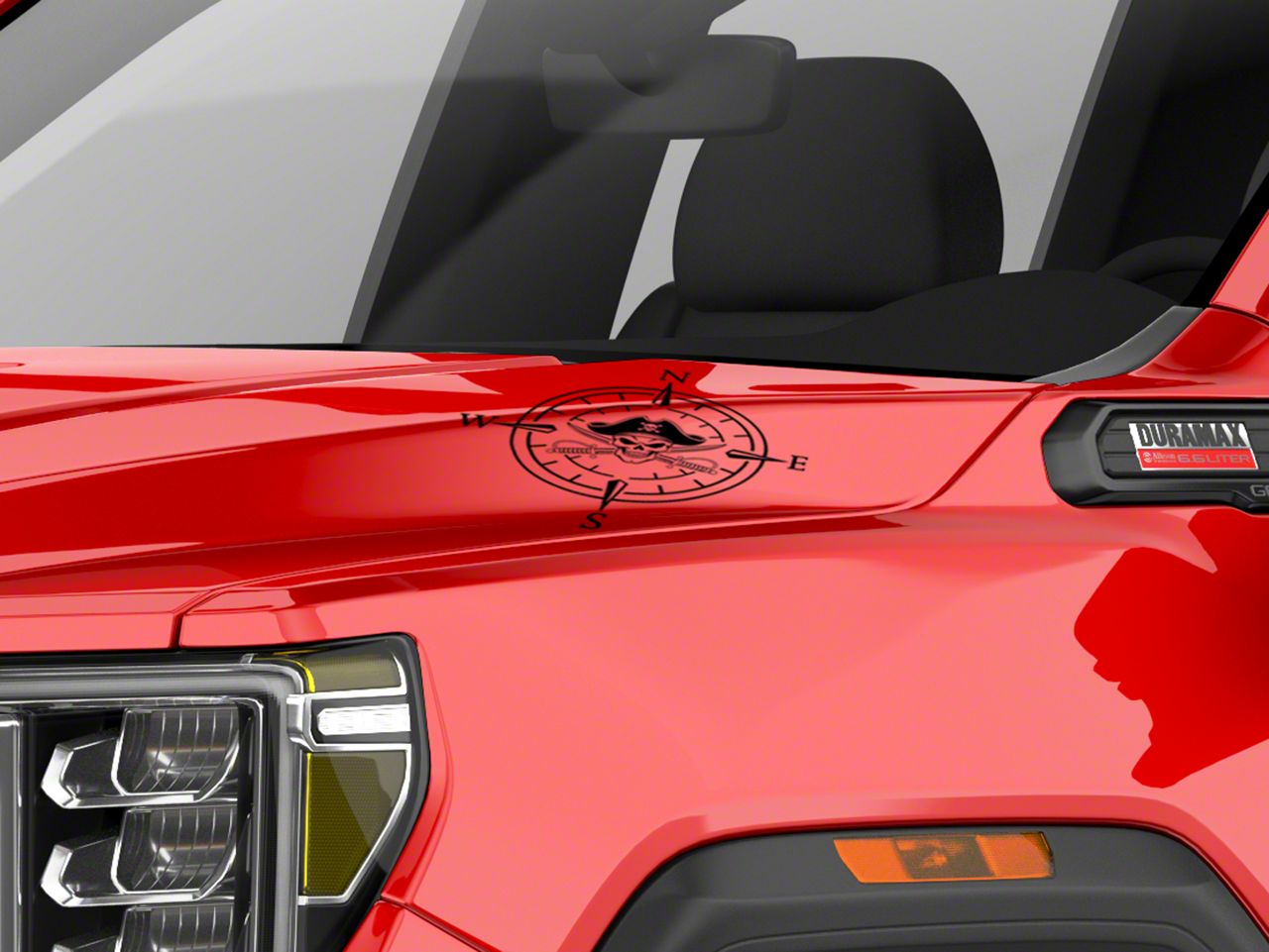 Pirate Compass Hood Decal. A simple and inexpensive way to personalize the exterior styling of your vehicle is with a Pirate Compass Hood Decal from SEC10. This Hood Decal features a pirate skull within a four point compass design.