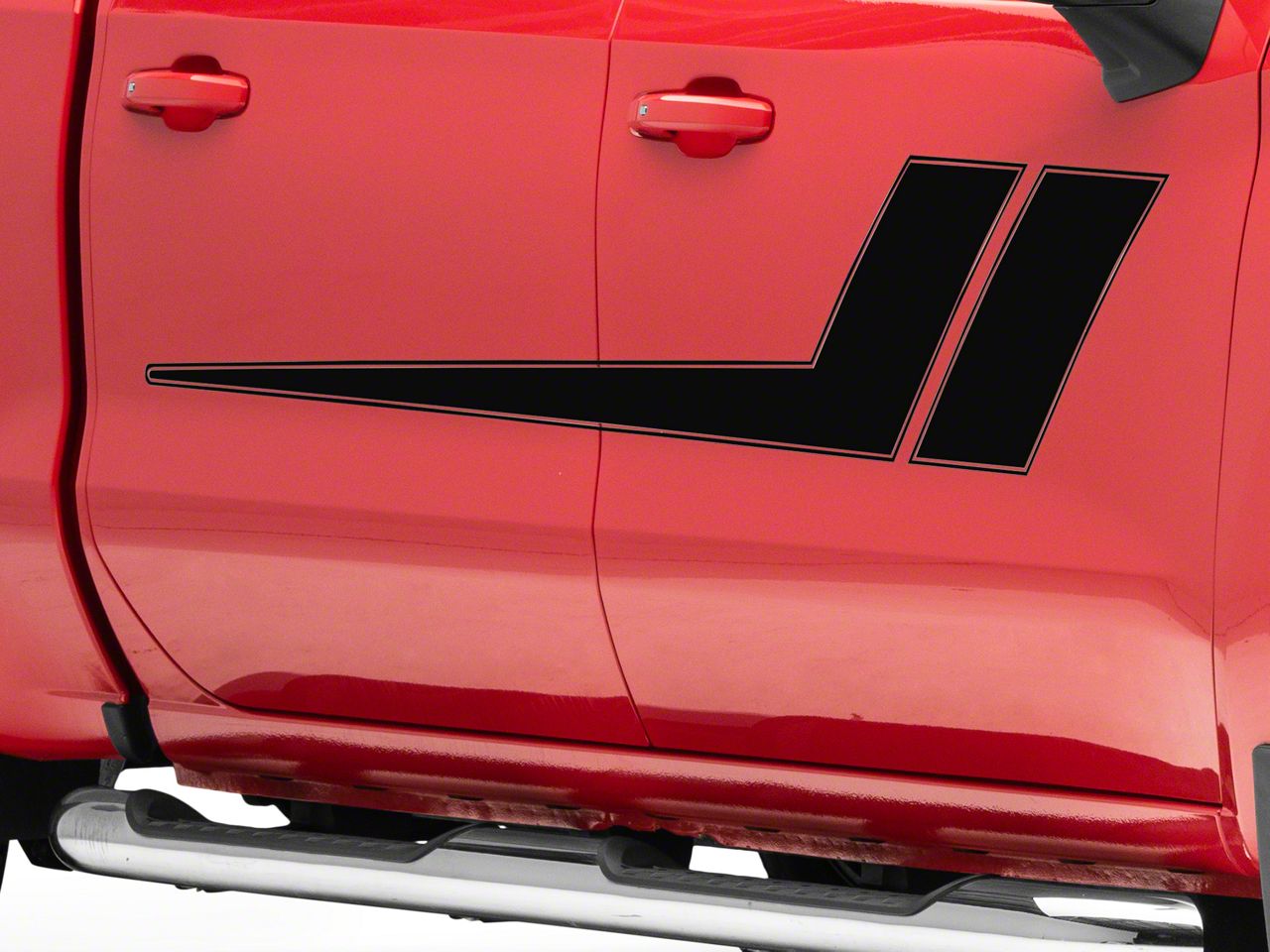 Application. These SEC10 Vertical Side Stripes with Outer Pinstripe; Black are designed to fit 1999-2022 GMC Sierra 1500 models.