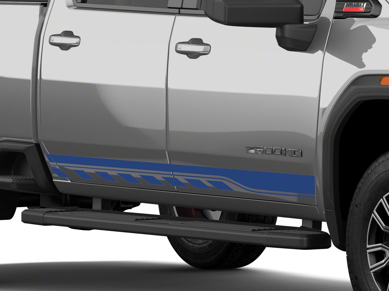 Application. These SEC10 Dash and Striped Rocker Stripes; Bluefeature a universal design and will fit most make and models. Driver and passenger side included.
