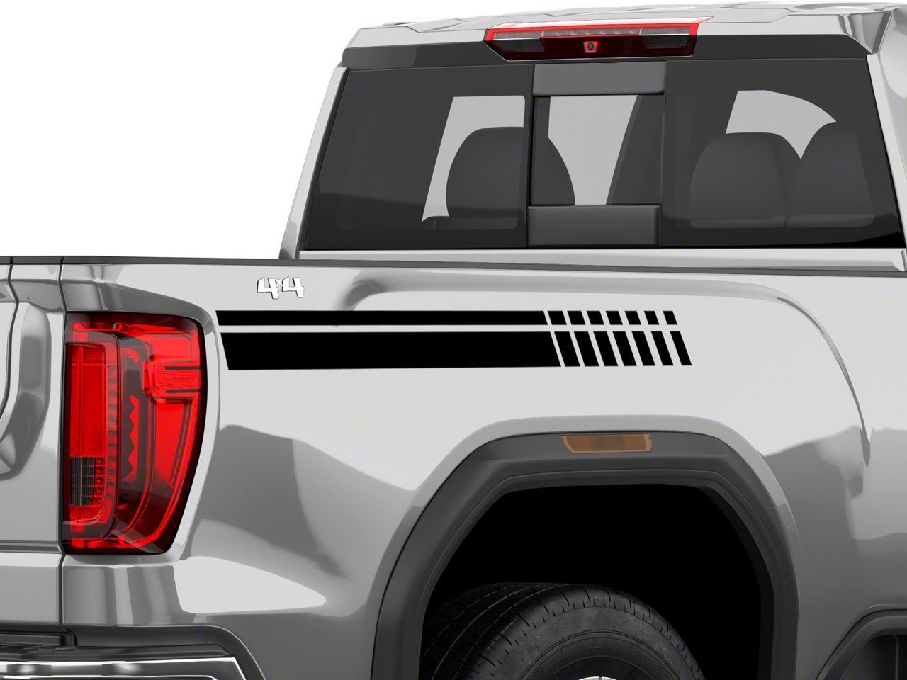 Dashed Bed Stripe Decals. A simple and inexpensive way to personalize the exterior styling of your GMC Sierra 3500 is with a set of SEC10 Dashed Bed Stripe Decals. These Decals were designed to accent the lines ot your trucks bed.