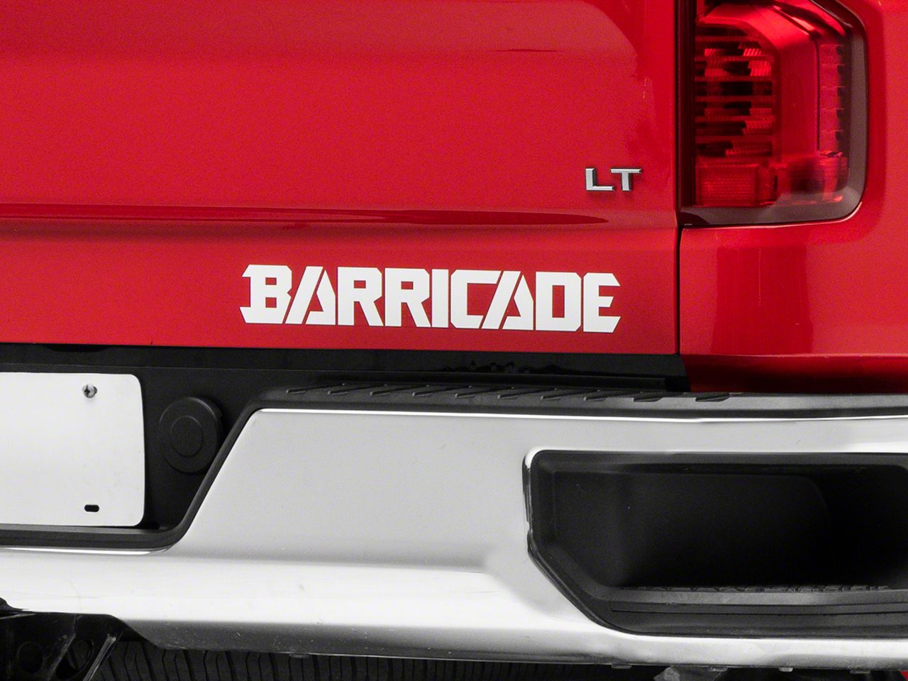 Barricade Decal. This great looking Barricade Logo Decal is a simple and effective way to let everyone know exactly what parts you're running on your off-road rig. This Decal has a universal design, so it can be applied to any smooth flat surface and looks especially good in your rear/side windows or on your tailgate.
