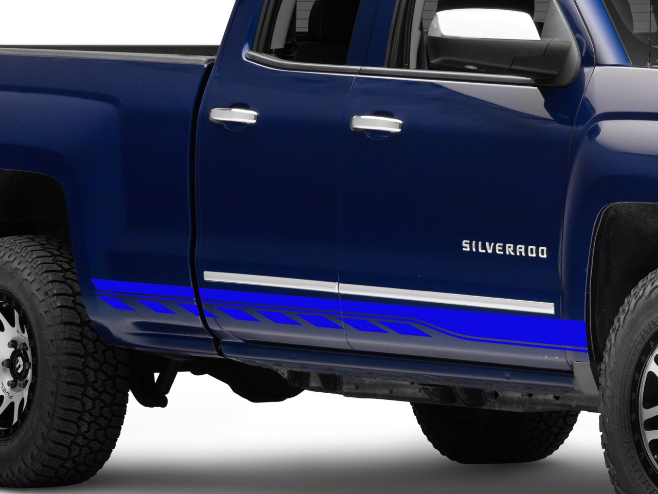 Application. These SEC10 Dash and Striped Rocker Stripes; Bluefeature a universal design and will fit most make and models. Driver and passenger side included.