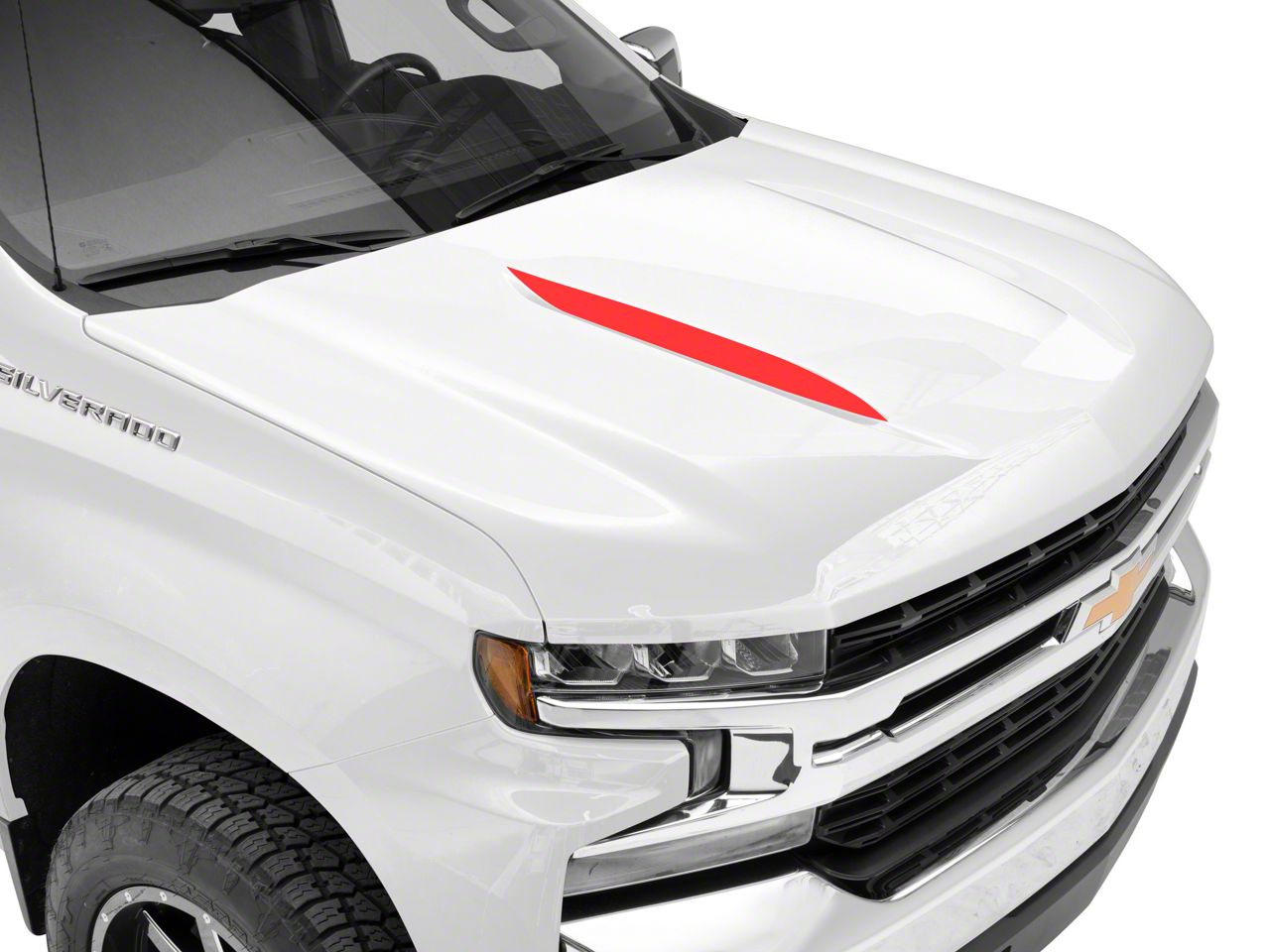 Application. These SEC10 Hood Accent Decals; Red are designed to fit 2019-2026 Chevrolet Silverado 1500 models equipped with the factory hood.