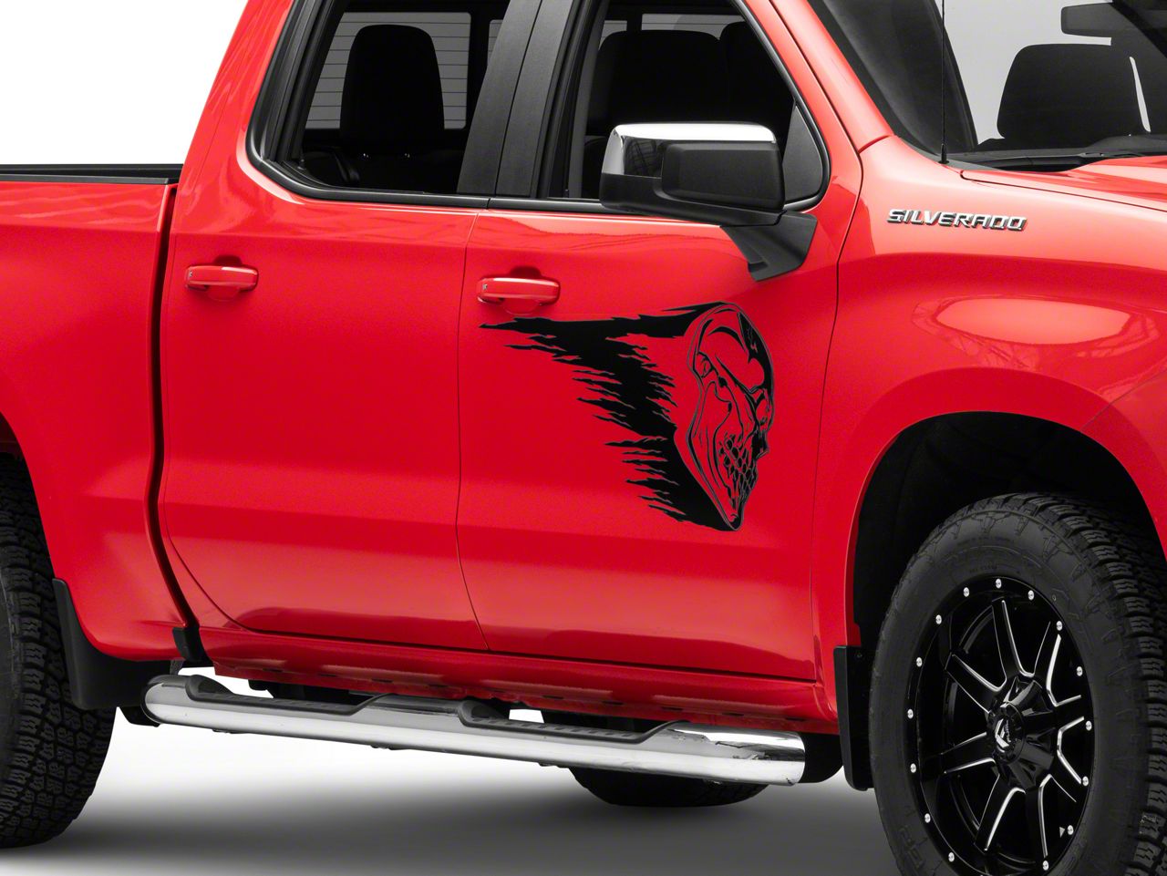 Application. These SEC10 Skull Crash Side Graphics in Black fit all 1999-2026 Chevrolet Silverado 1500 models.