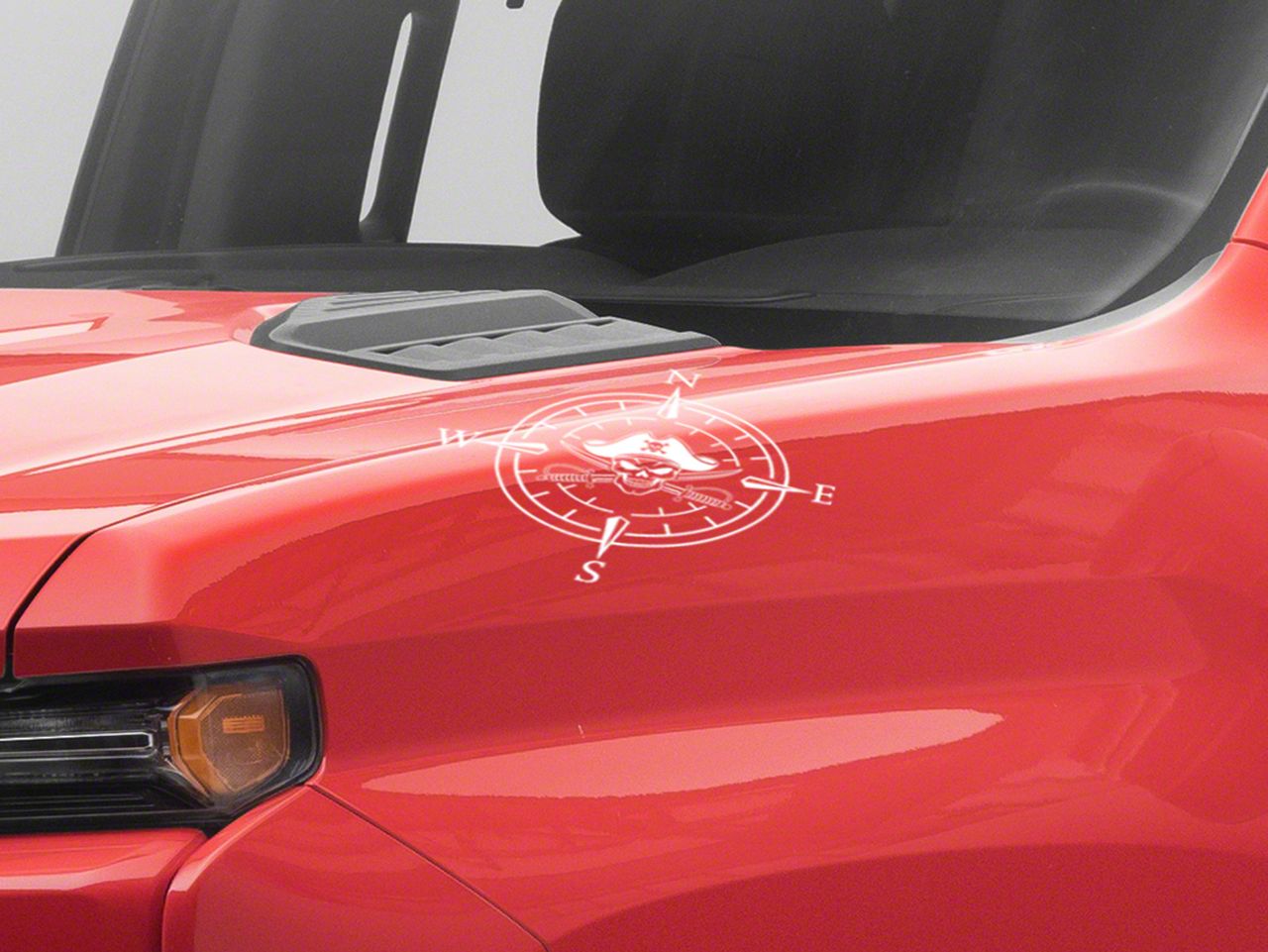 Pirate Compass Hood Decal. A simple and inexpensive way to personalize the exterior styling of your vehicle is with a Pirate Compass Hood Decal from SEC10. This Hood Decal features a pirate skull within a four point compass design.