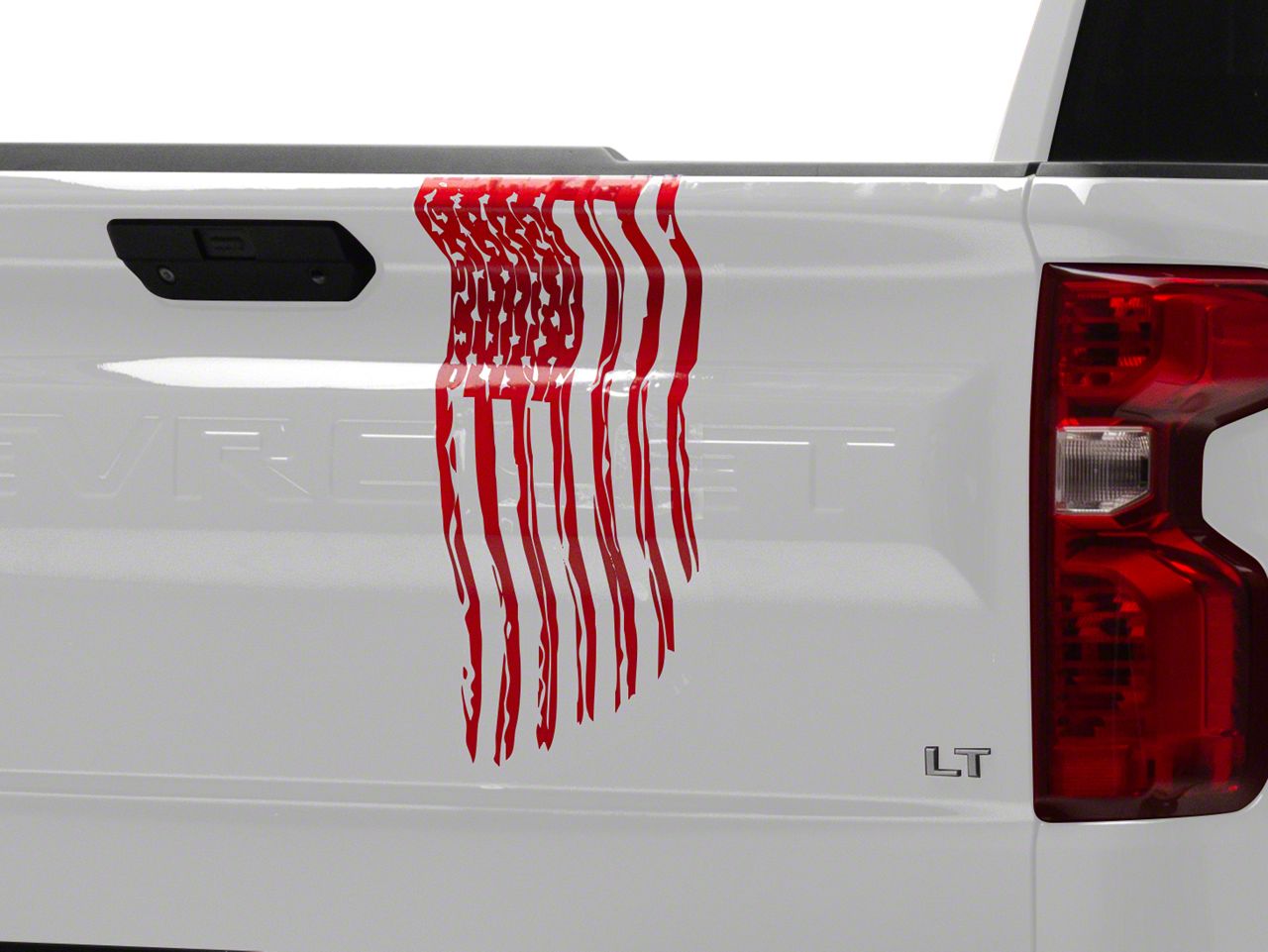 Application. This SEC10 Vertical Tailgate Distressed Flag Decal; Red is designed to fit 1999-2026 Chevrolet Silverado 1500 models. Sold individually.