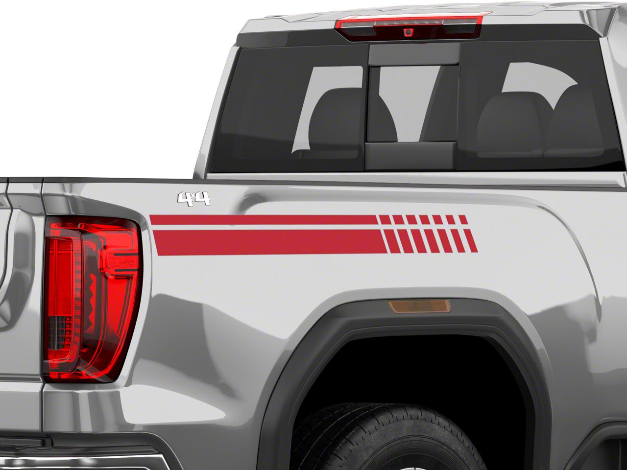 Dashed Bed Stripe Decals. A simple and inexpensive way to personalize the exterior styling of your Chevrolet Silverado 2500 is with a set of SEC10 Dashed Bed Stripe Decals. These Decals were designed to accent the lines ot your trucks bed.