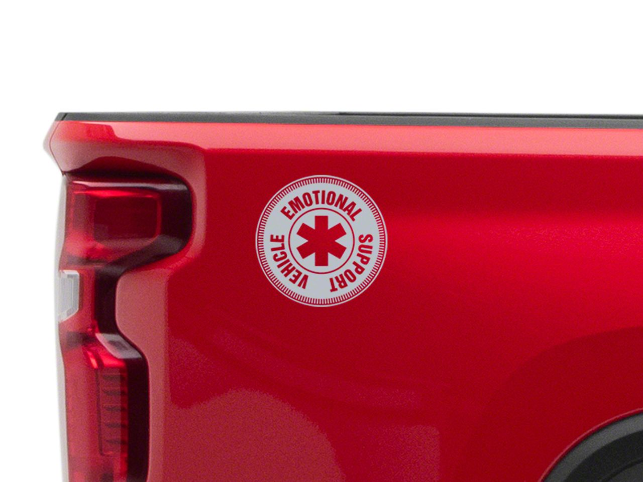 Emotional Support Vehicle Decal. A simple and amusing way to personalize the exterior styling of your vehicle is with a SEC10 Emotional Support Vehicle Decal. This Decal features a humorous take on the EMT (Emergency Medical Technician) logo design.
