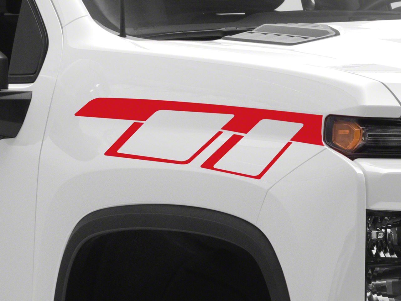 Application. These SEC10 Geometric Hash Mark; Red are designed to fit 2020-2026 Chevrolet Silverado 2500 HD models. Driver and passenger side included.