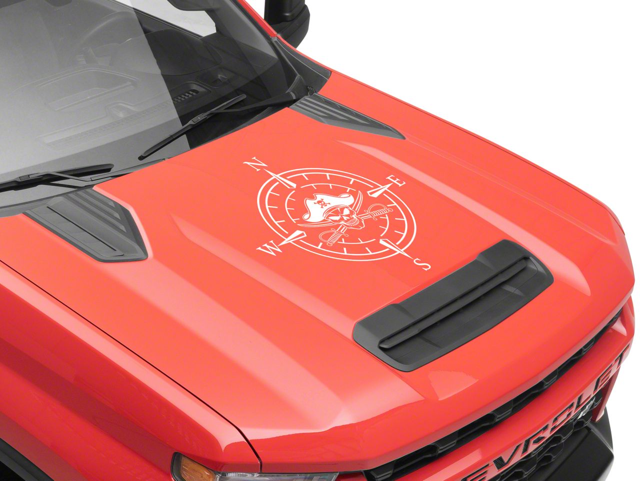 Pirate Compass Hood Decal. A simple and inexpensive way to personalize the exterior styling of your vehicle is with a Pirate Compass Hood Decal from SEC10. This Hood Decal features a pirate skull within a four point compass design.