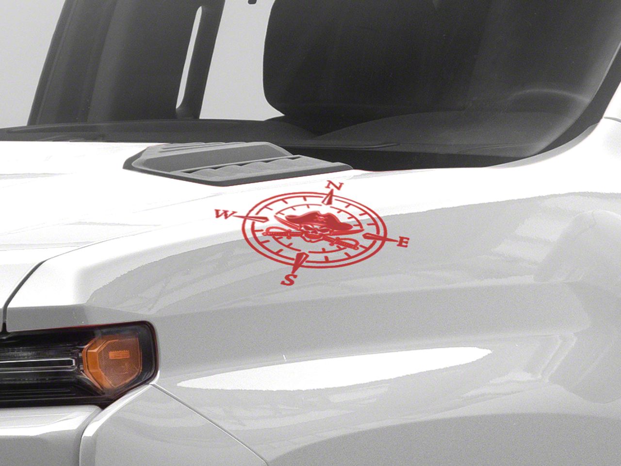 Pirate Compass Hood Decal. A simple and inexpensive way to personalize the exterior styling of your vehicle is with a Pirate Compass Hood Decal from SEC10. This Hood Decal features a pirate skull within a four point compass design.