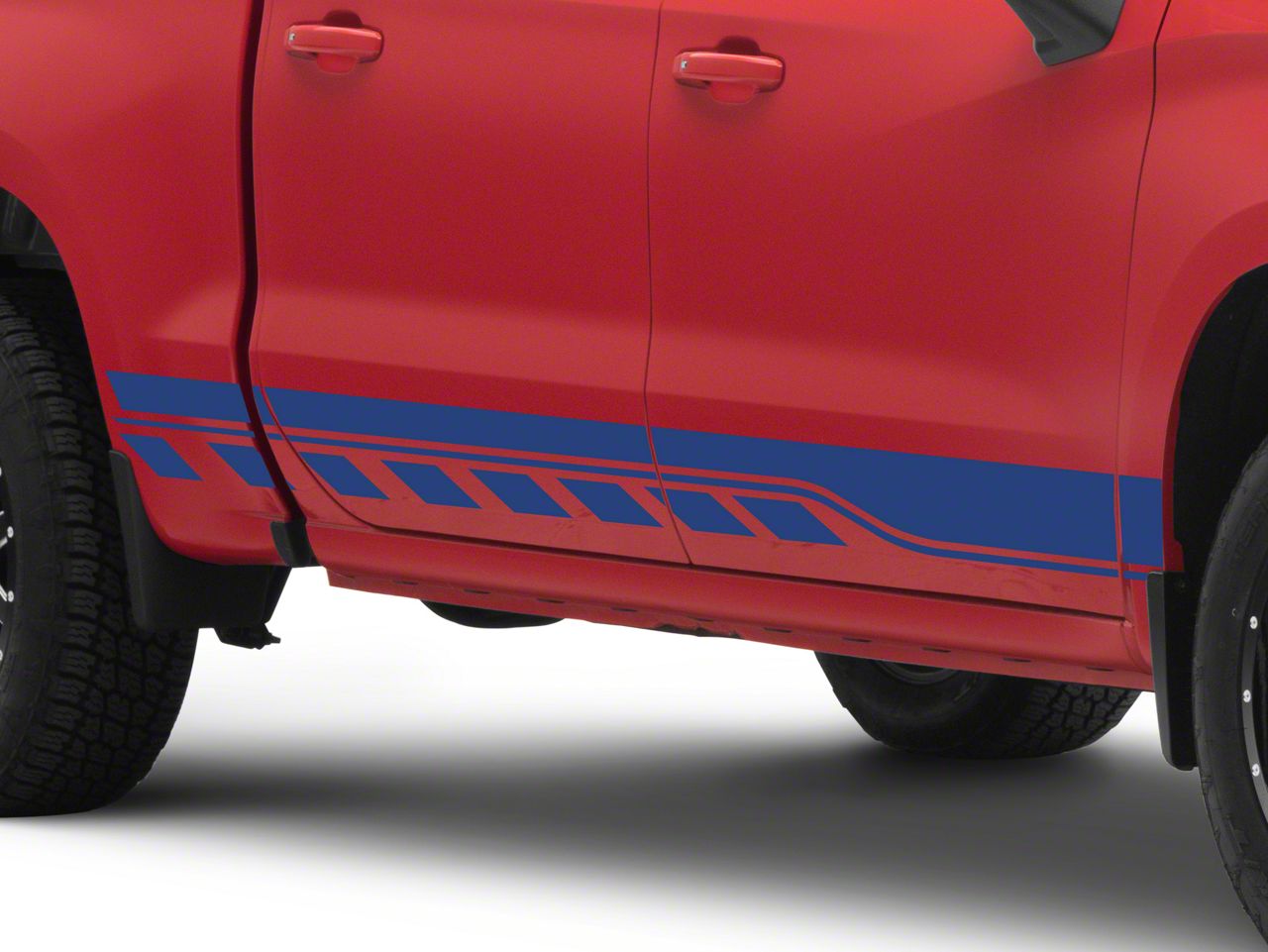Application. These SEC10 Dash and Striped Rocker Stripes; Bluefeature a universal design and will fit most make and models. Driver and passenger side included.