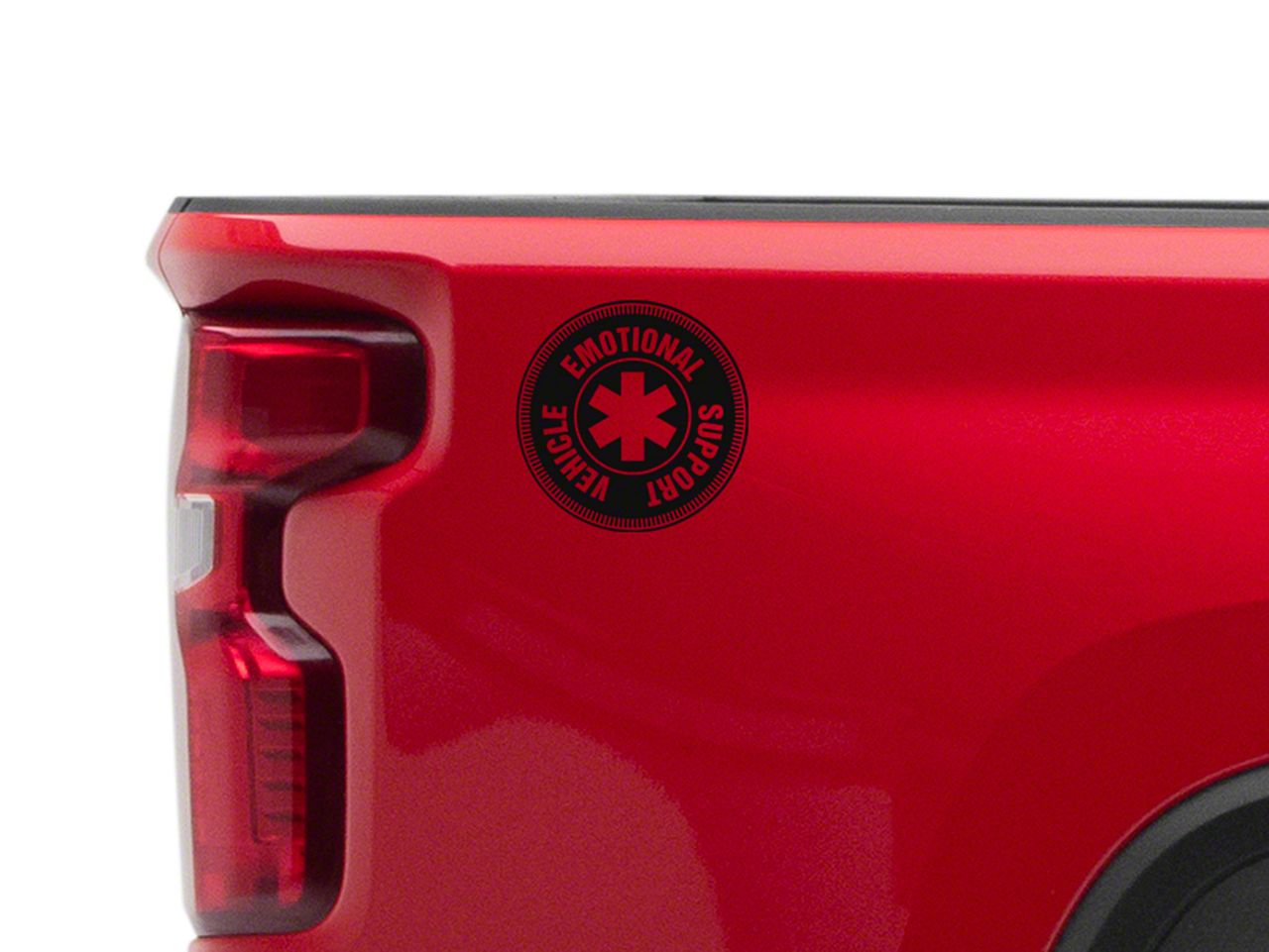 Emotional Support Vehicle Decal. A simple and amusing way to personalize the exterior styling of your vehicle is with a SEC10 Emotional Support Vehicle Decal. This Decal features a humorous take on the EMT (Emergency Medical Technician) logo design.
