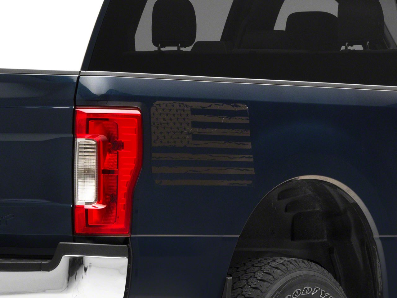 Patriotic Styling. Now you can add patriotic styling to your car, truck, tool box or any other clean smooth surface with this Matte Black SEC10 12x24 Flag Decal. Featuring a distressed American Flag design, this Decal will proudly show off your patriotism for the USA.