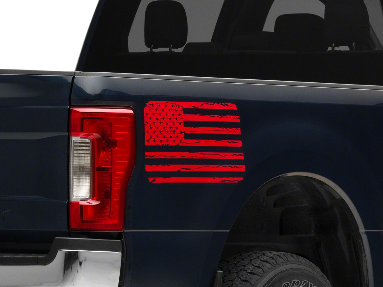 Patriotic Styling. Now you can add patriotic styling to your car, truck, tool box or any other clean smooth surface with this Red SEC10 12x24 Flag Decal. Featuring a distressed American Flag design, this Decal will proudly show off your patriotism for the USA.