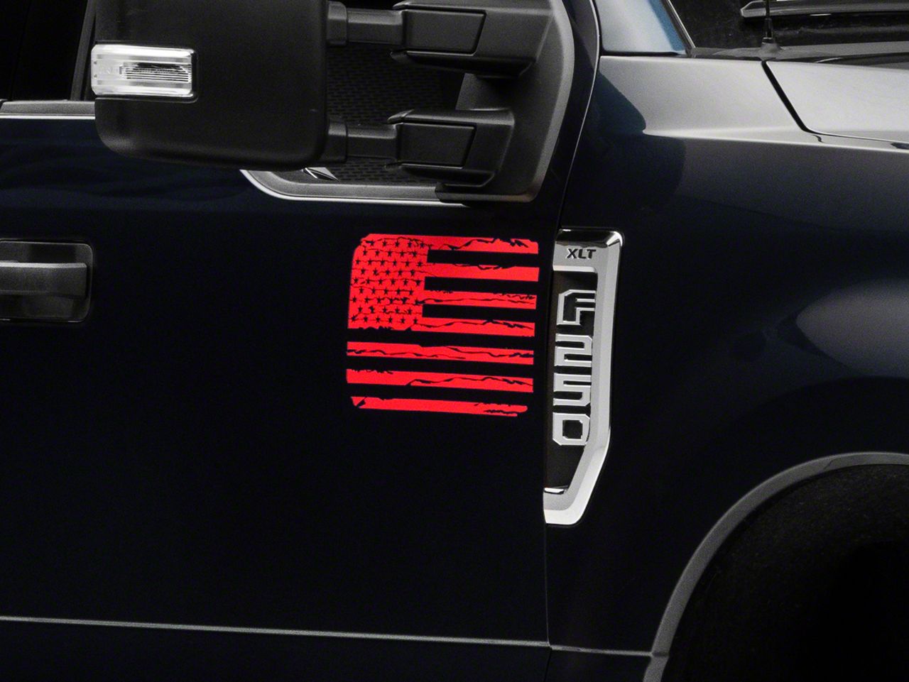 Patriotic Styling. Now you can add patriotic styling to your car, truck, tool box or any other clean smooth surface with this Red SEC10 15x8 Flag Decal. Featuring a distressed American Flag design, this Decal will proudly show off your patriotism for the USA.