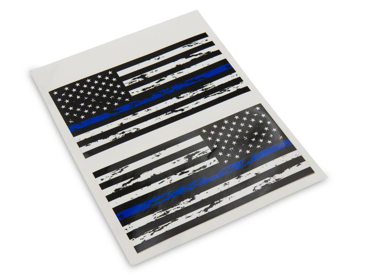 Patriotic Styling. A set of SEC10 Small Distressed Flag Decals are the perfect way to give your ride the exciting patriotic styling it's been lacking. Also notable is the blue line that serves as one of the flag's stripes to show support for the men and women of the United States law enforcement agency's.