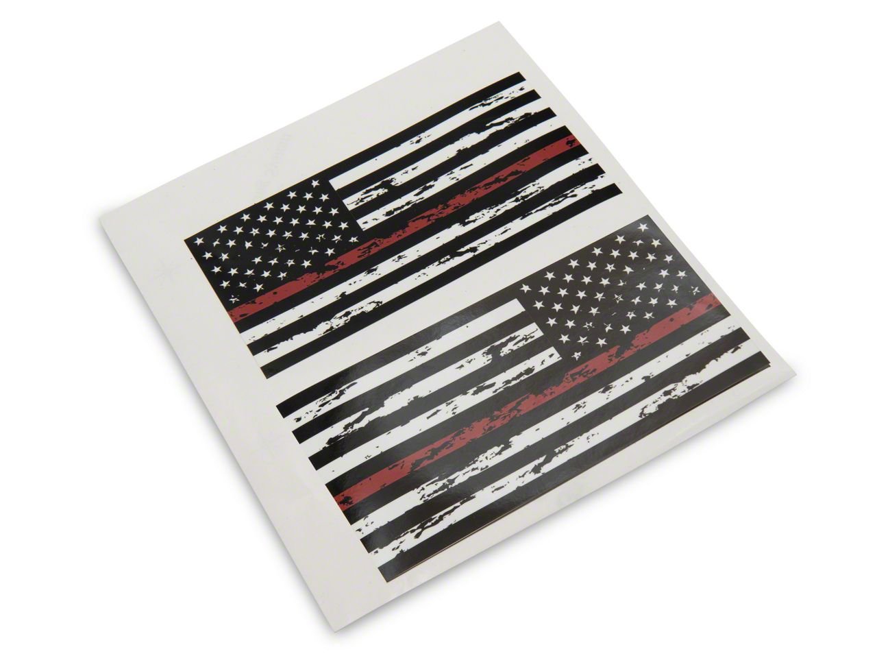 Patriotic Styling. A set of SEC10 Small Distressed Flag Decals are the perfect way to give your ride the exciting patriotic styling it's been lacking. Also notable is the red line that serves as one of the flag’s stripes to show support for all of America's Fire Fighters.