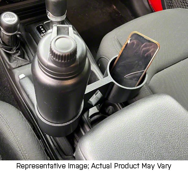 Convenient and Secure. The Sheltech 3D Phone and Cup Holder Console is designed to keep your essentials close at hand while driving. With space for two cups and a phone, this console ensures that your beverages and device are securely held. The textured black finish adds a stylish touch to your vehicle's interior.
