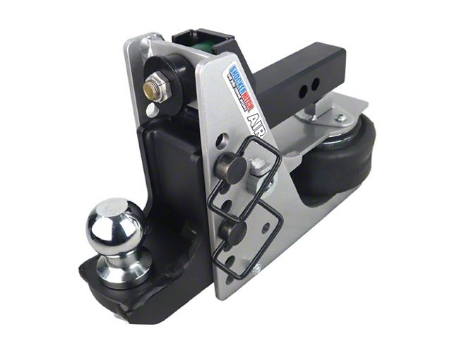 Smooth Towing Experience. The Shocker Hitch Air Receiver Hitch enhances your towing experience by eliminating tugs, thumps, jerks, and bumps. Featuring a drop ball mount with a 2-5/16-inch ball, and built-in air spring bag this hitch ensures a smoother ride while hauling heavy loads. Its robust construction and impressive 10,000 pounds GTW capacity make it an essential tool for heavy-duty towing.