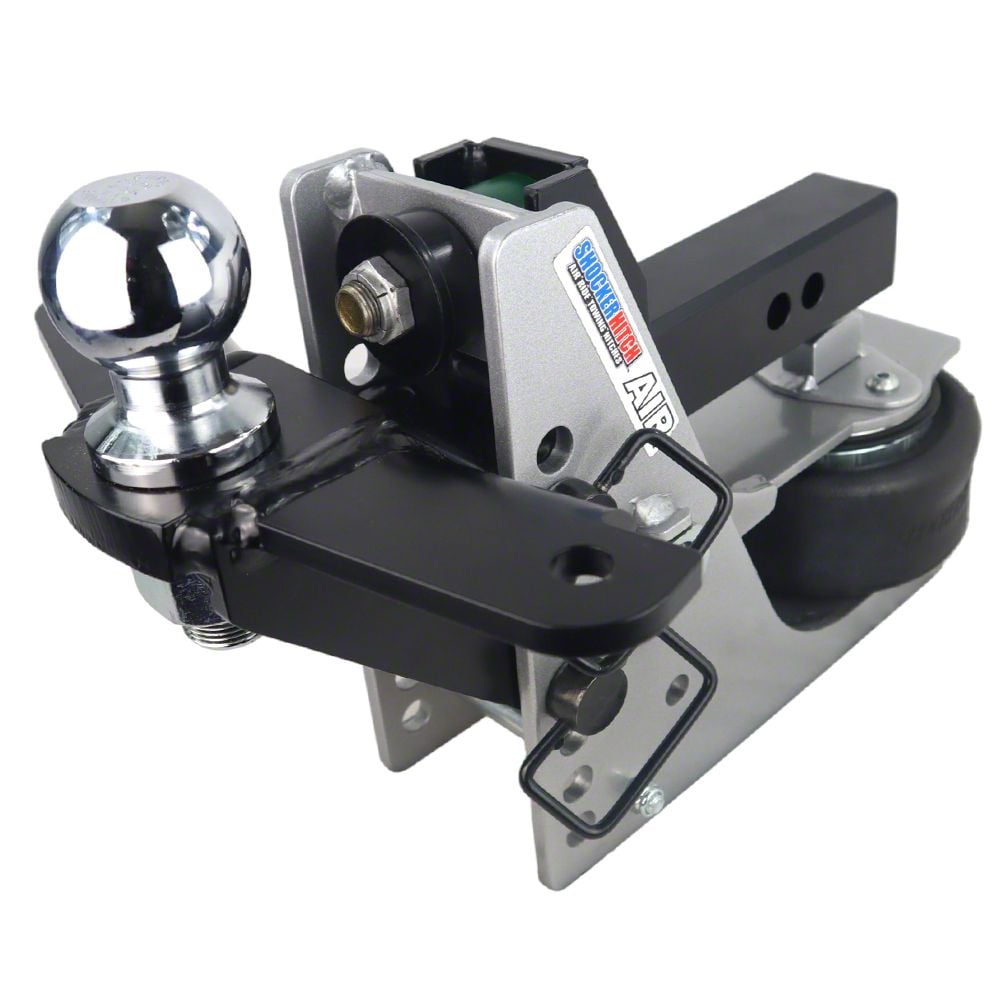 The air spring bag sits under the receiver tube allowing a short distance of 10 inches between the mounting pin and ball center. You will find the advantage of the Air Shocker is your ability to adjust air pressure for the best ride and load control. Great for pickup trucks.