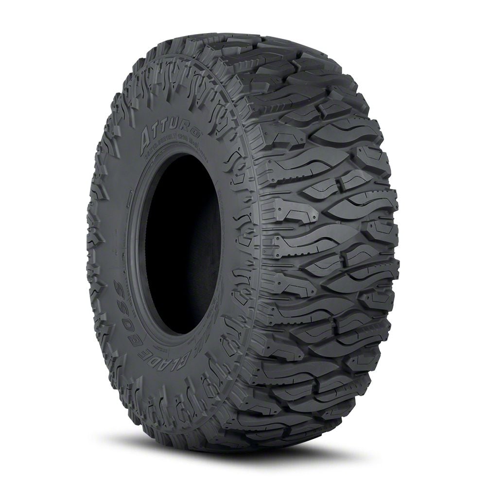 Meticulous Features. This Atturo Trail Blade BOSS Green Label Tire is a versatile product with unmatched off- and on-road performance. You can rely on this tire to take you to the next level of adventure thanks to its remarkable features, like the 37x12.50R17 tire size, 22-inch tread depth, 8.5 to 11-inch rim width, and 8-ply rating.