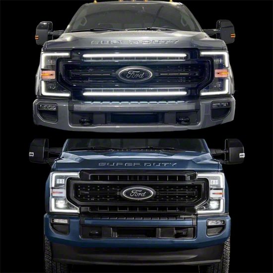 Design. The F-250's front end looks sleeker and more contemporary thanks to the black framing of the Sick Diesel LED Grille Lights. This cosmetic upgrade offers the vehicle a unique, personalized appearance that distinguishes it from other versions and enhances its allure.