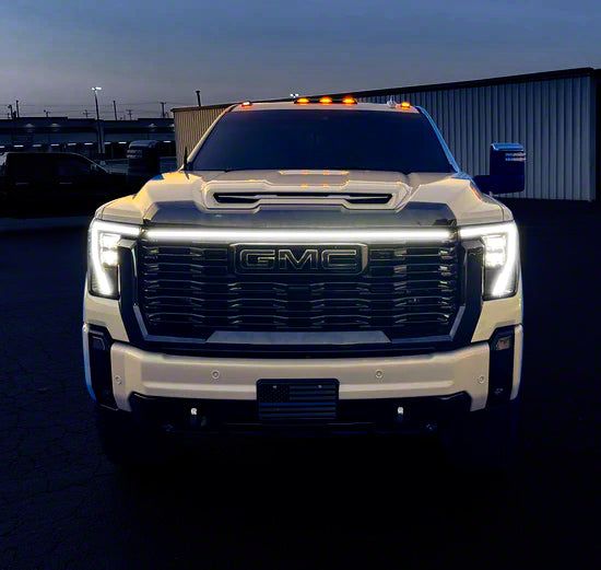 Application. This Sick Diesel LED Grille Lights with Plug and Play Harness; Smoked; Black Frame fits 2024–2026 Sierra 2500 HD Denali Models.