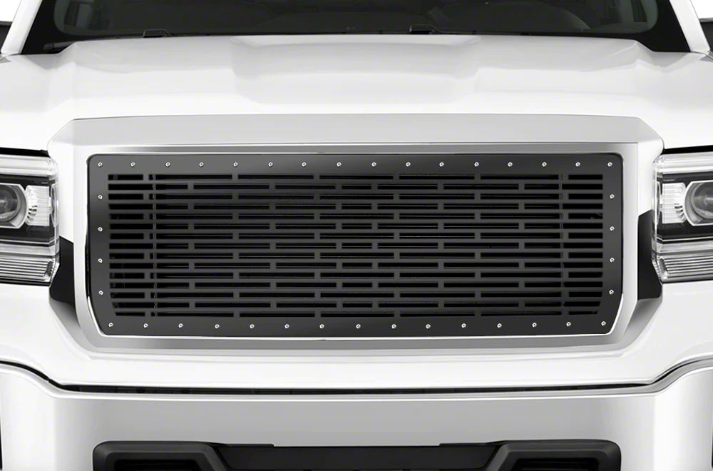 Application. This Upper Grille Insert fits 2014-2015 GMC Sierra 1500 models. It enhances the truck by providing additional protection for the radiator and front fascia against rocks and road debris, while the robust mesh styling gives your vehicle a distinctive, aggressive front-end presence.