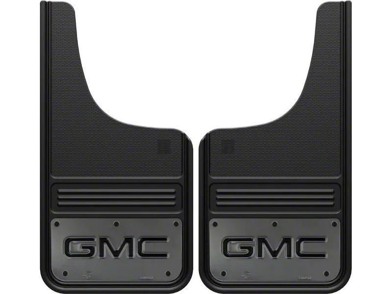 Application. These 12-Inch x 23-Inch Mud Flaps with a GMC Logo have universal fitment.