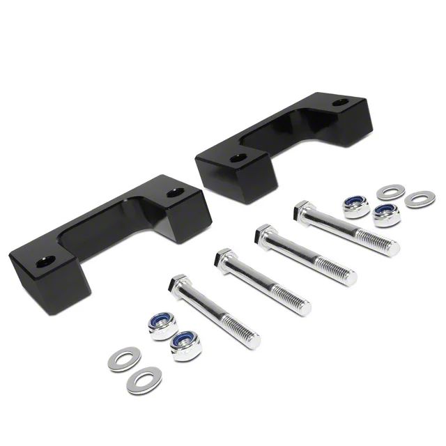 Construction and Appearance. Manufactured from billet 6061 aluminum, this leveling kit ensures durability and strength. It is wrapped with a corrosion-resistant black anodized finish, providing both a sleek appearance and long-lasting protection against the elements.