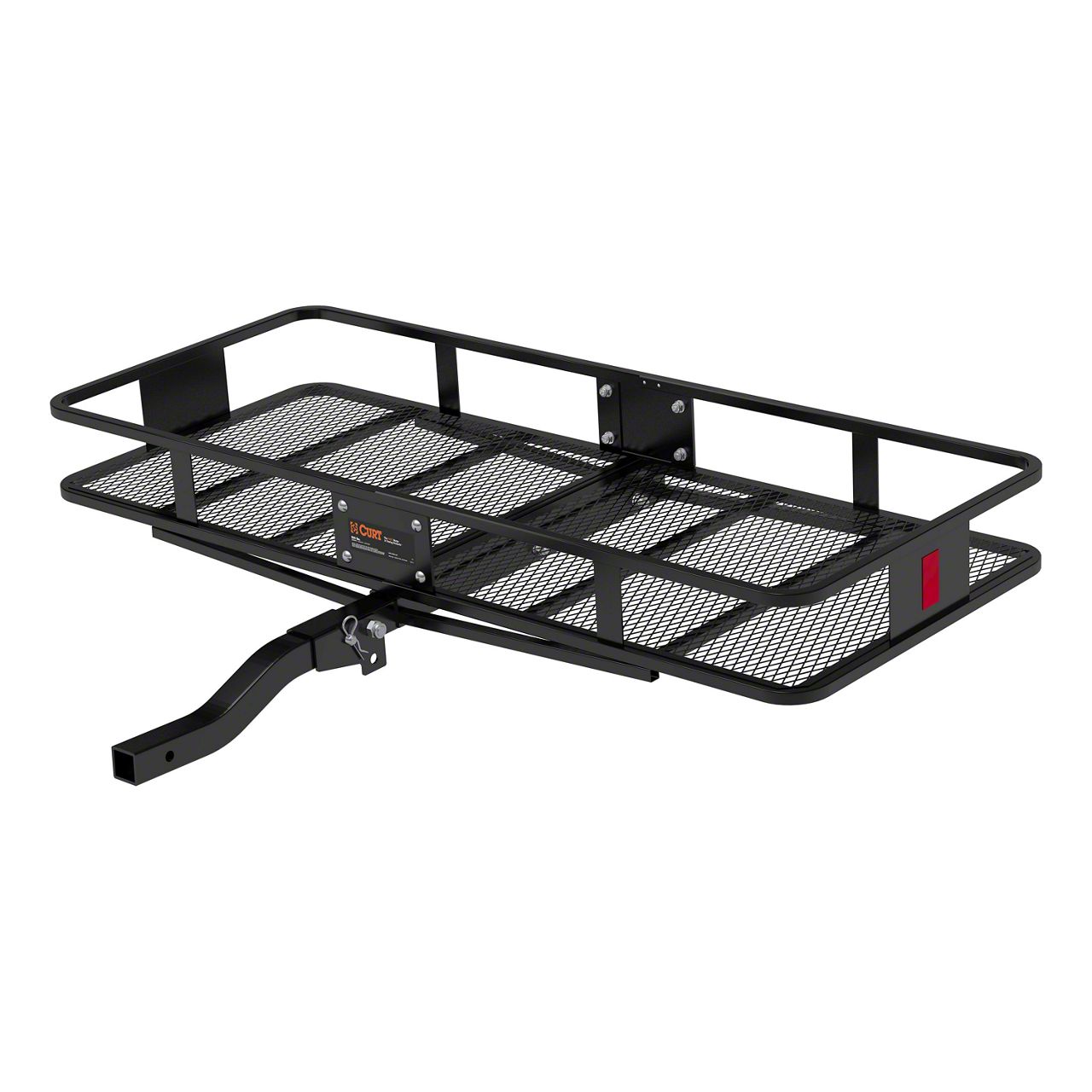 Basket Cargo Carrier. If you're looking for more storage space without compromising interior space, this 2-Inch Receiver Hitch Basket-Style Cargo Carrier; Folding Shank; 60-Inch x 24-Inch is a godsend. Built durable, this carrier allows you to take more on your long adventure, while bringing more people along for the ride.