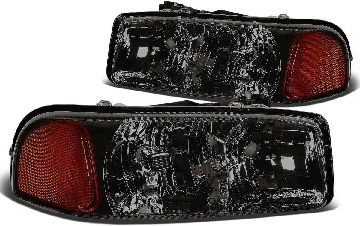 Application. These 2-Piece Headlights with Amber Corner Lights; Black Housing; Smoked Lens are designed to fit 1999-2006 GMC Sierra 1500 models equipped with halogen headlights. Driver and passenger side included. Reuses factory bulbs.CA Residents: WARNING: Cancer and Reproductive Harm - www.P65Warnings.ca.gov