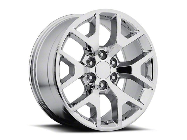 2014 Sierra Replica Chrome 6-Lug Wheel; 20x9; 27mm Offset exudes a sleek aesthetic appeal, complementing a range of vehicle styles. Its dark stainless finish emanates sophistication, while the brand reputation of ensures robustness. This wheel seamlessly merges elegance with durability.