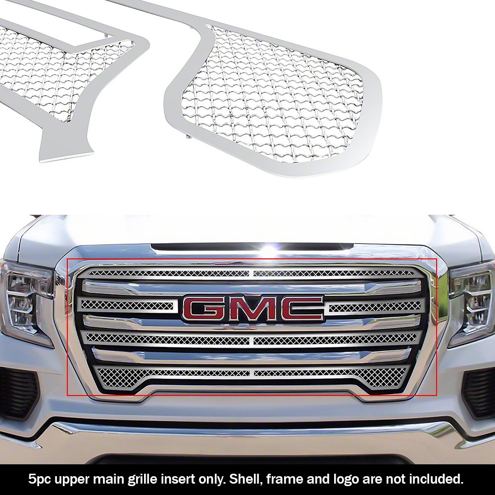 Application. These 2.50mm Wire Mesh Upper Overlay Grilles fit 2019 to 2021 GMC Sierra 1500 Elevation and SLE models.