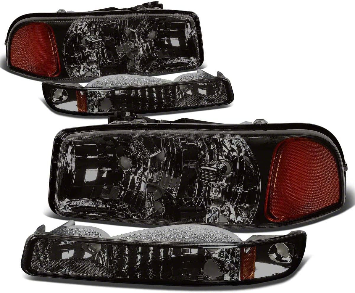 Application. These 4-Piece Headlights with Amber Corner Lights; Black Housing; Smoked Lens are designed to fit 1999-2006 GMC Sierra 1500 models equipped with halogen headlights. Driver and passenger side included. Reuses factory bulbs.CA Residents: WARNING: Cancer and Reproductive Harm - www.P65Warnings.ca.gov