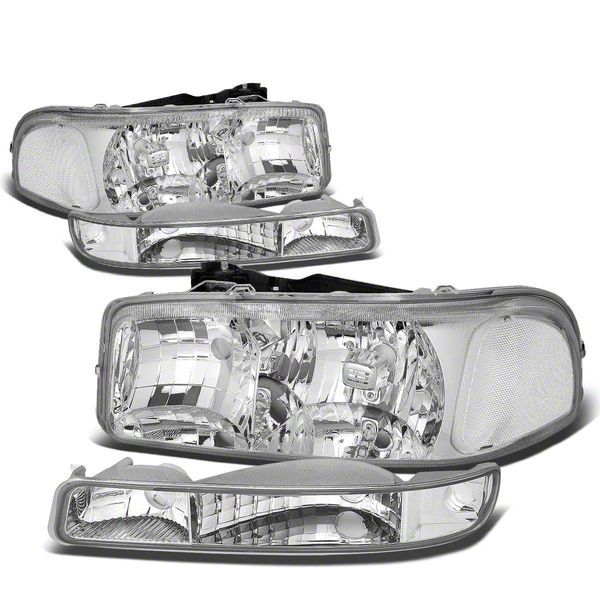 Application. These 4-Piece Headlights with Clear Corner Lights; Chrome Housing; Clear Lens are designed to fit 1999-2006 GMC Sierra 1500 models equipped with halogen headlights. Driver and passenger side included. Reuses factory bulbs.CA Residents: WARNING: Cancer and Reproductive Harm - www.P65Warnings.ca.gov