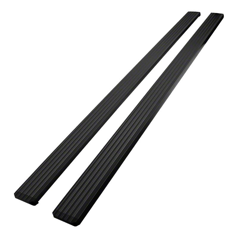 Heavy-Duty Running Boards. If you’re looking for running boards that can keep up with your truck’s heavy-duty applications, these Cab Length Running Boards are what you need. Crafted from high-strength aluminum, these running boards have the durability to stand up whatever the harshest driving conditions throw at them. Additionally, they’re covered with a rich black powder-coated finish, which fortifies their structures against rust, chip, and scratch damage.