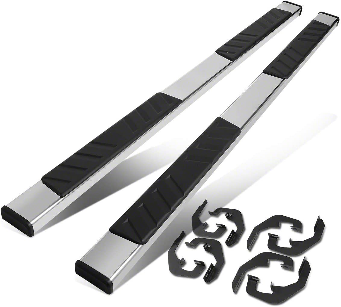 Heavy Duty Construction. These Running Boards are manufactured from heavy-duty stainless steel for superior strength and durability. These Running Boards are then completed in a bright, mirror polished finish for classic good looks and long lasting corrosion resistance. As part of the final assembly a set of rugged, high grip, non-slip step pads are installed.