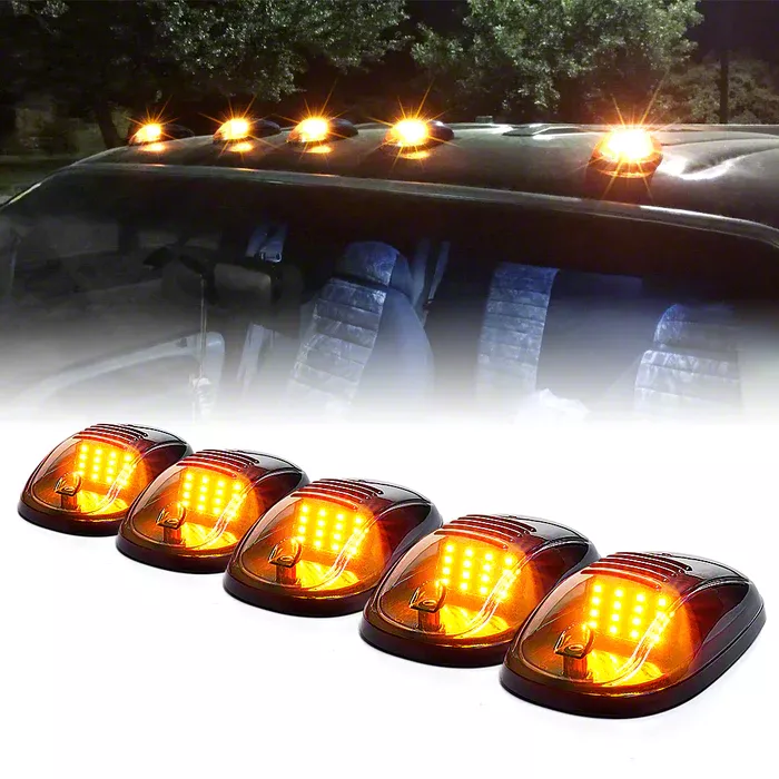 Increased Safety and Styling. The 5-LED Guide G2 Series Smoked Roof Top Cab Clearance Light Kit in Amber is a versatile and stylish solution for all your lighting needs. This roof top cab clearance light kit features five LED pods, providing ultra-bright, amber-colored illumination for enhanced visibility during nighttime driving. These marker lights serve multiple purposes, functioning as clearance lights, side markers, turn signals, or even trailer lights.