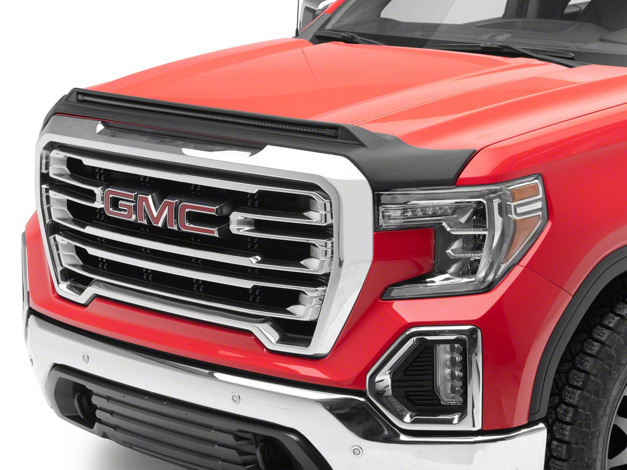 Affordable Rubble Protector. if you're looking for a budget-friendly hood accessory that can reduce the scuff marks and debris dings on your Sierra's facade, consider the Aeroskin LightShield Pro Hood Protector which not only provides better hood protection against rubble and debris but also helps improve your road presence with its low-beam amber lights.