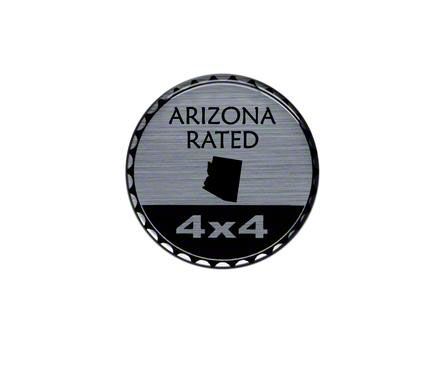 Show Your Grand Canyon State Pride. Make your pride in the Grand Canyon state known to all with this Arizona Rated Badge. This front fender badge is made to match the fit and finish of a standard trail-rated badge, including the silver-gray and black color scheme. This design makes this badge an excellent replacement if your factory counterpart gets damaged. More significantly, this badge features a text that reads Arizona Rated as well as the Arizona graphic to proudly display your home state.