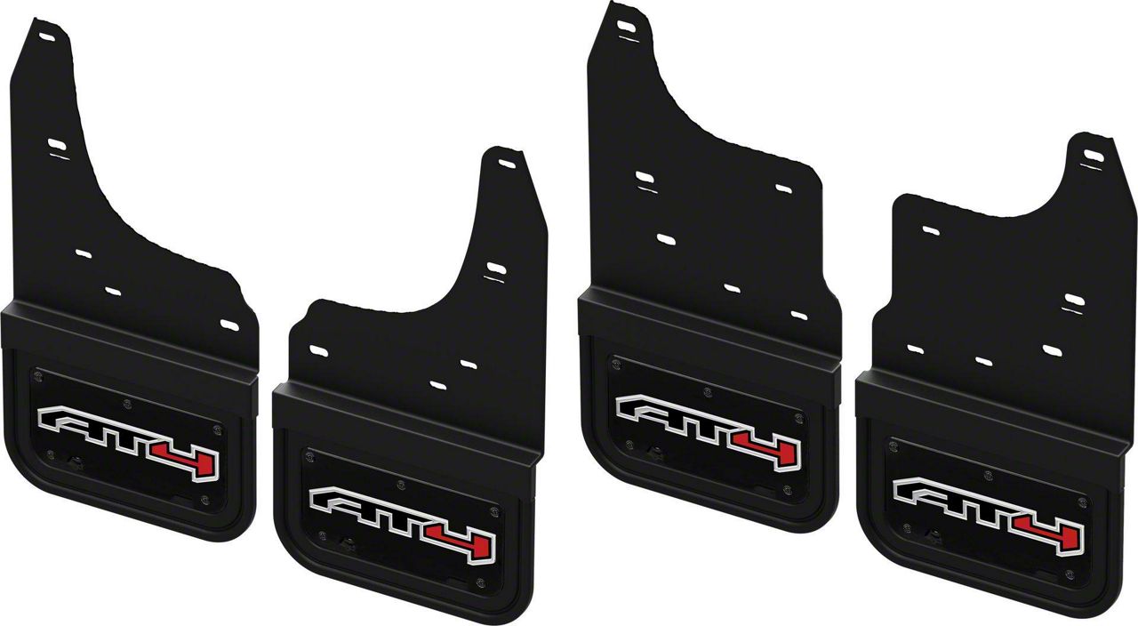 Black Wrap No-Drill Mud Flaps with AT4 Logo; Front and Rear (19-26 Sierra 1500, Excluding AT4X)Find parts that fit my vehicle