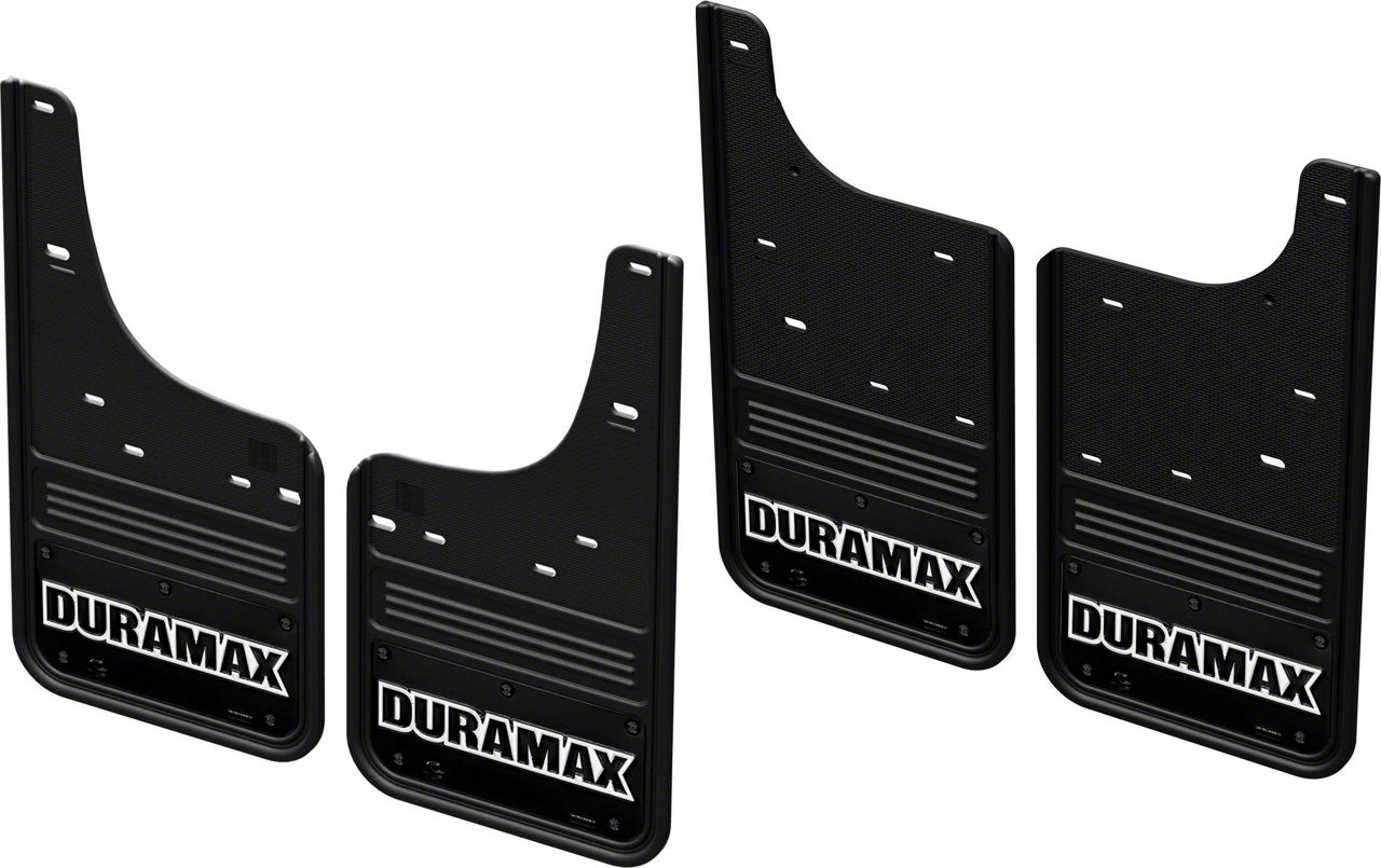 The Truck Hardware Gatorback series mud flaps are the industries highest quality heavy duty mud guards! The rugged design and quality finish of these mud flaps make the perfect compliment to your truck. Featuring a 1/2" thick rubber flap with an embossed stainless steel plate, these mud flaps are sure to impress while they protect your investment. Officially licensed logos like the Duramax logo gives your Sierra truck a custom look that is a step above the competition. This kit also includes the finishing caps to fill the gap left when the factory mud guards are removed