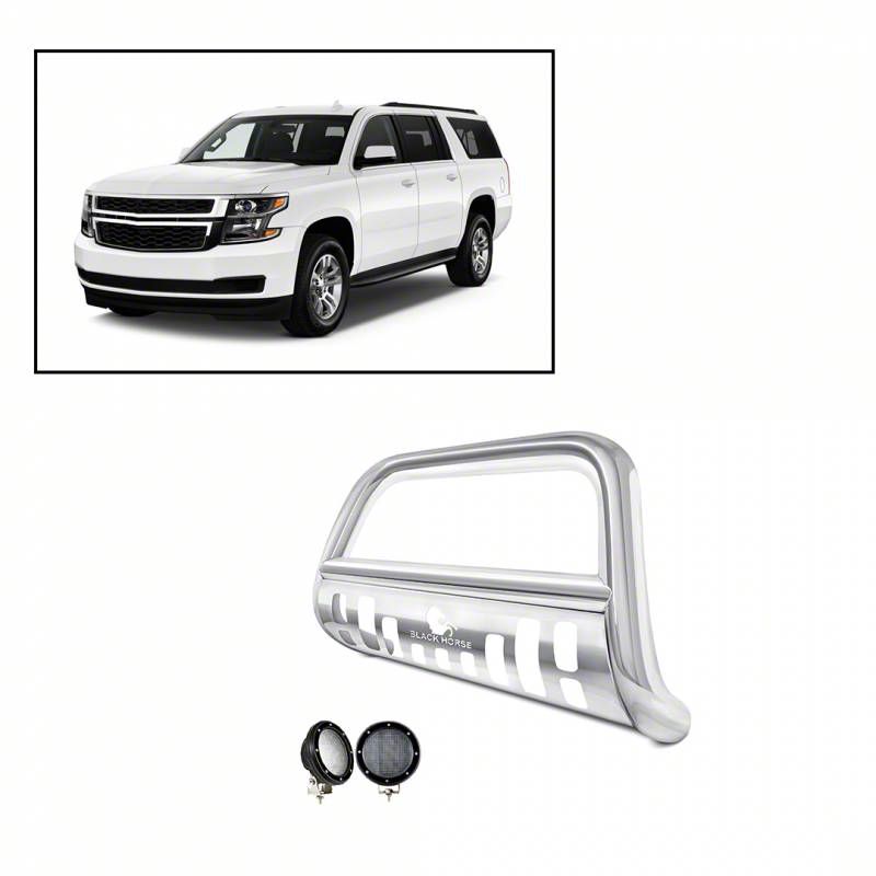 Upgrade Your Vehicle's Style and Protection. Enhance the look and functionality of your vehicle with the Bull Bar with 5.30-inch Black Round Flood LED Lights; Stainless Steel. This bull bar is designed for those seeking a stylish and functional upgrade for their vehicle's front end. With integrated black round flood LED lights, it not only adds a rugged aesthetic but also improves visibility in low-light conditions, making it perfect for both on and off-road adventures.