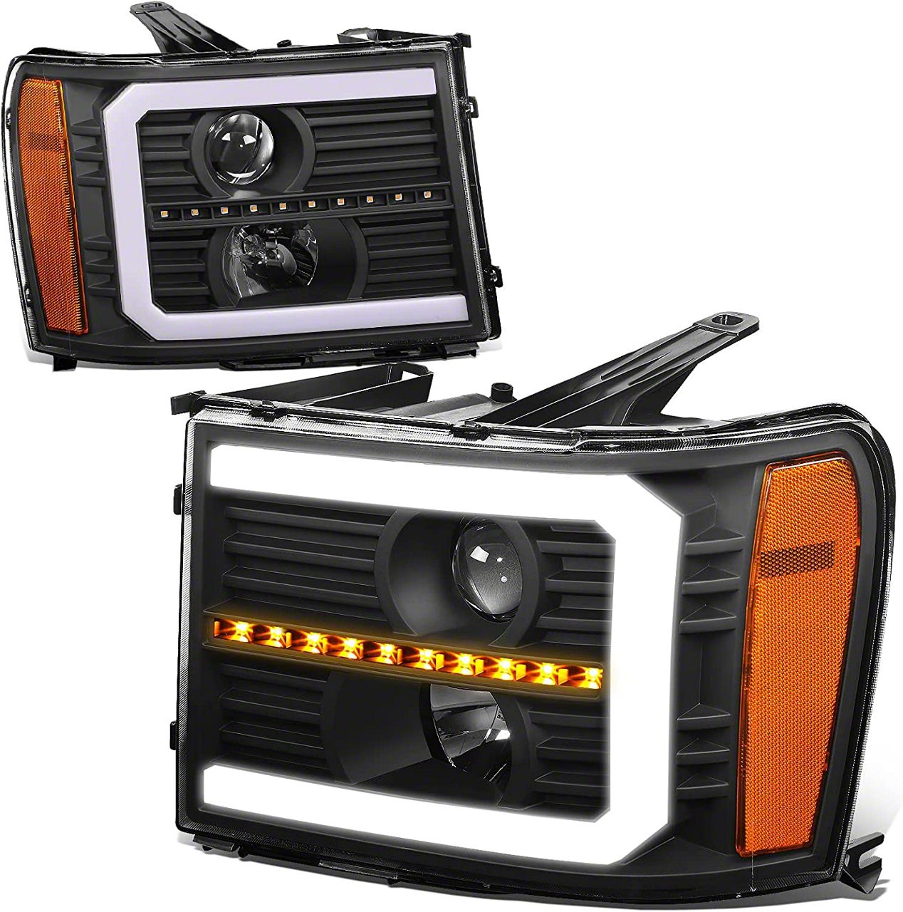 Application. This C-Bar LED DRL Sequential Projector Headlights with Amber Corners, Black Housing, and Clear Lens fits all 2007 – 2013 GMC Sierra 1500 models.