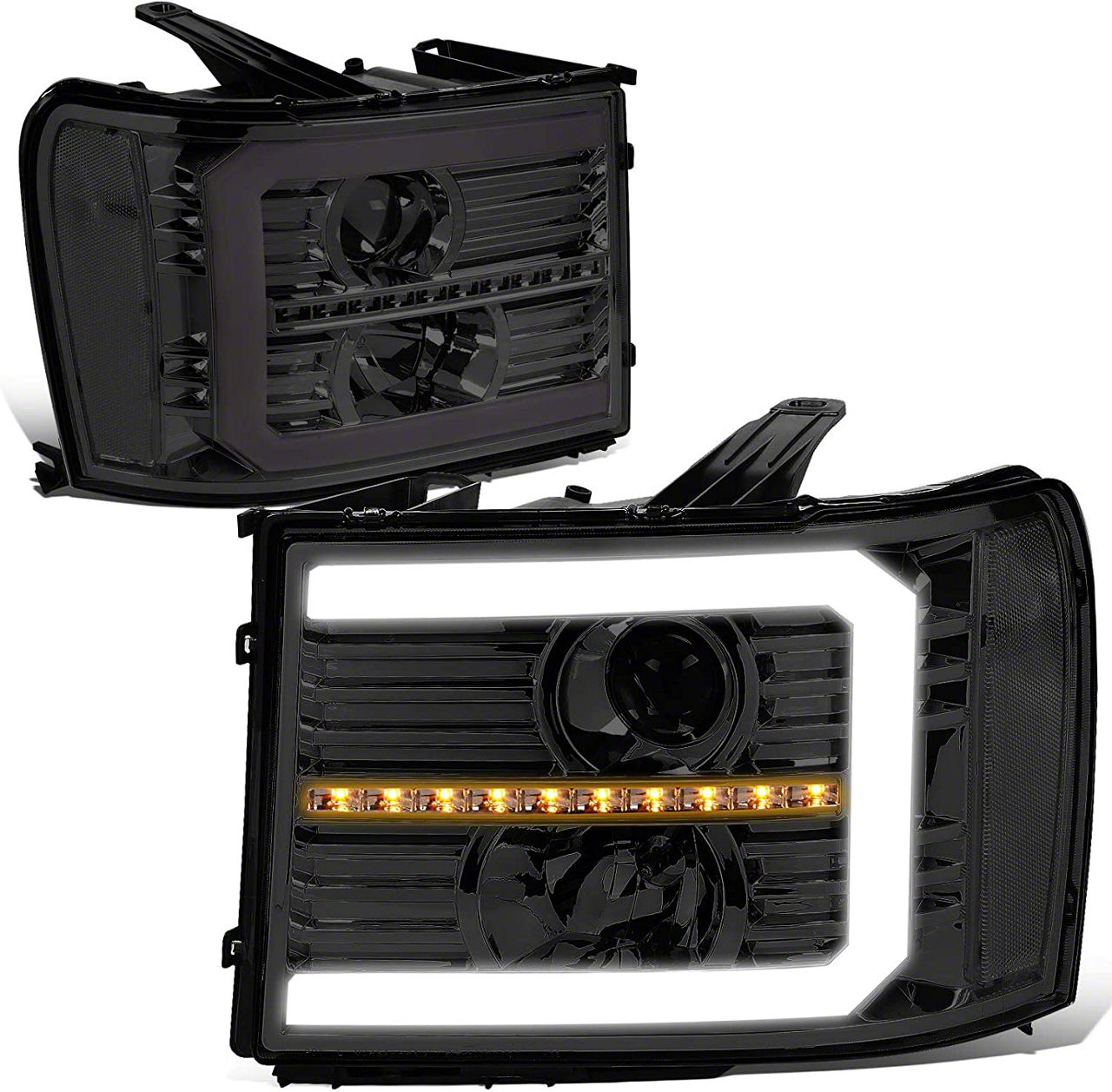 Application. The C-Bar LED DRL Sequential Projector Headlights with Clear Corners are crafted to be precisely suitable with 2007-2013 Sierra 1500s.