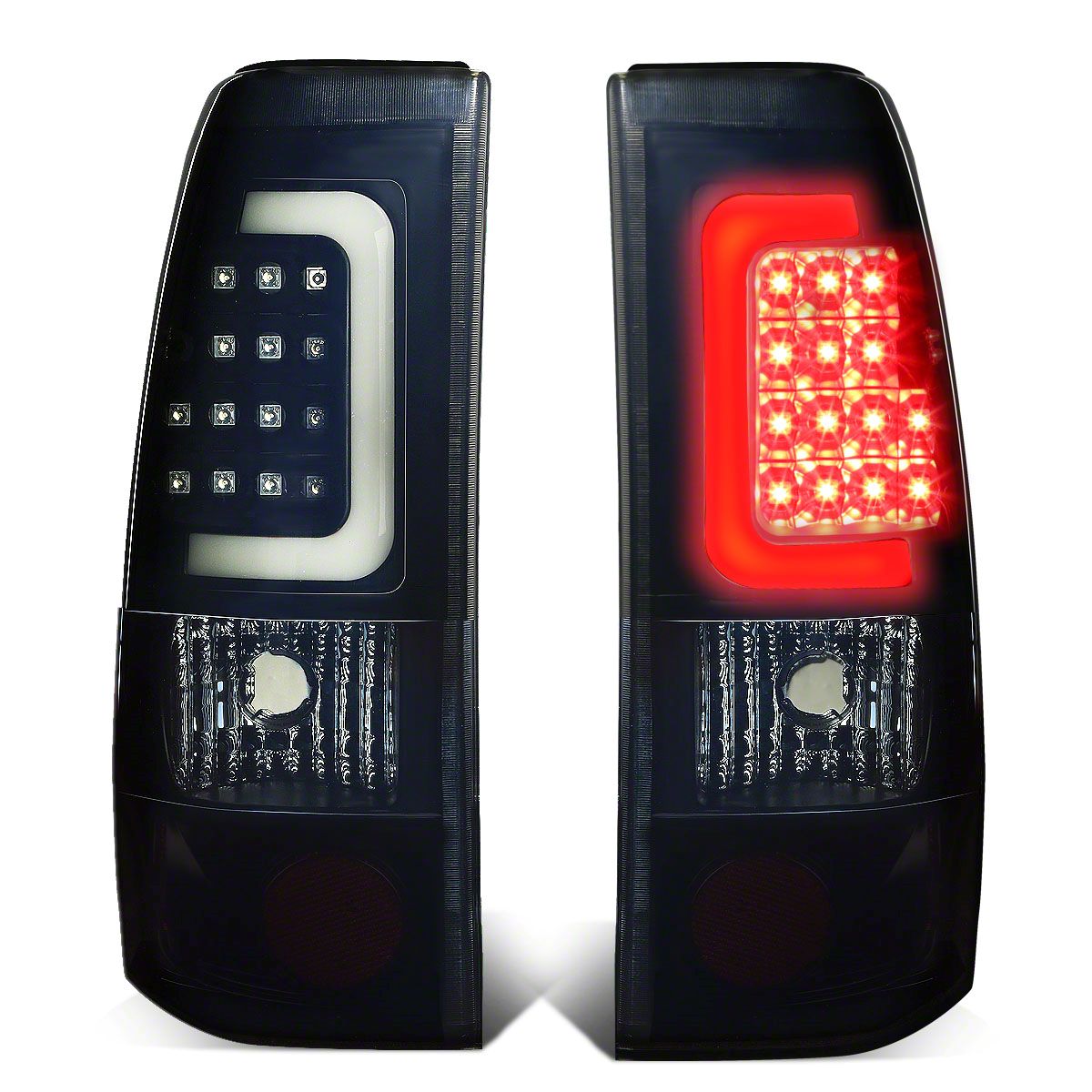 C-Bar LED Tail Lights; Black Housing; Smoked Lens (99-03 Sierra 1500 Fleetside)Find parts that fit my vehicle